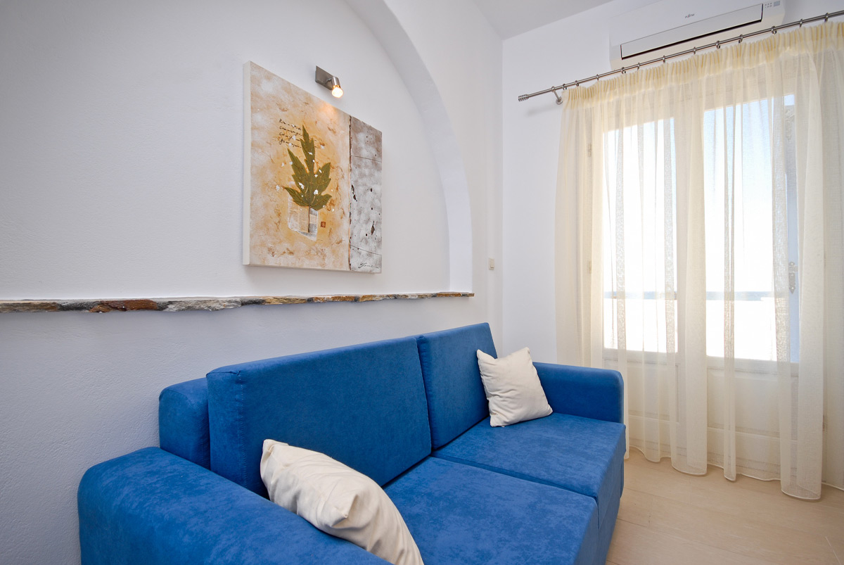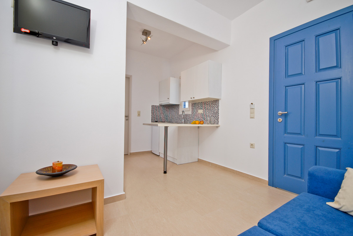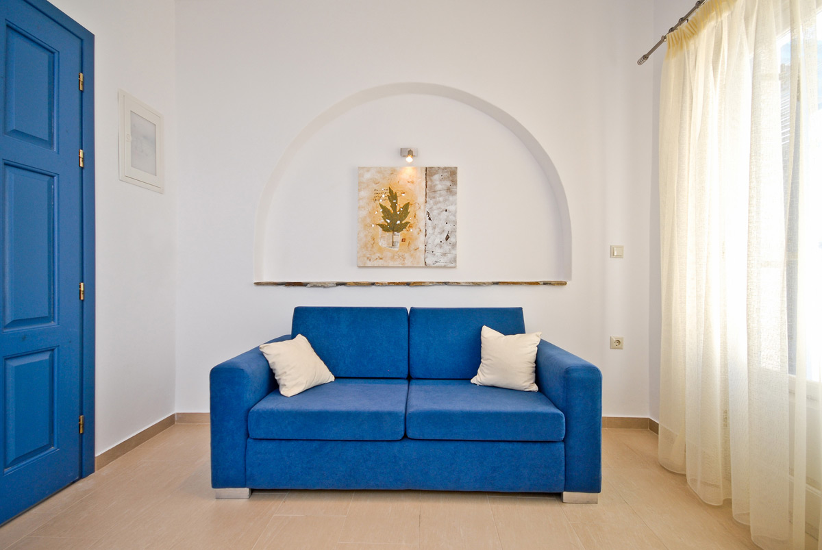 Blue Myth offers 9 studios for 2 people. 3 of the studios consist of a main bedroom and a living room where there is a double bed sofa.